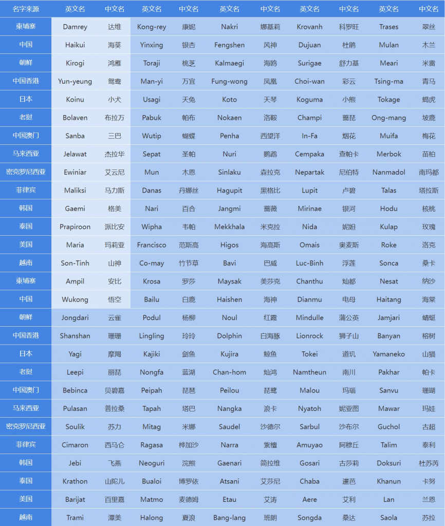 ESCAP/WMO台风委员会西北太平洋和南中国海热带气旋命名表注释(2024年起执行)